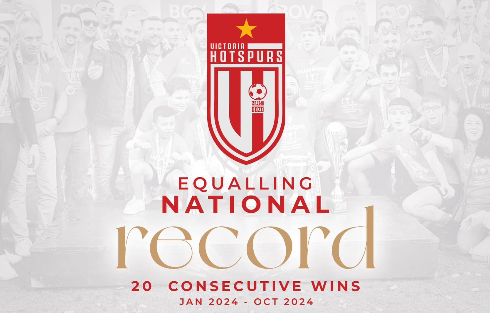 Victoria Hotspurs FC is thrilled to announce that our team has reached an extraordinary milestone in Maltese football history: 20 consecutive domestic victories across all competitions! This achievement places us in the prestigious company of only two other clubs in Maltese football history: Floriana FC, who achieved this in the early years of 1910-1913, and Gzira United FC, with their winning streak in 1998-1999.